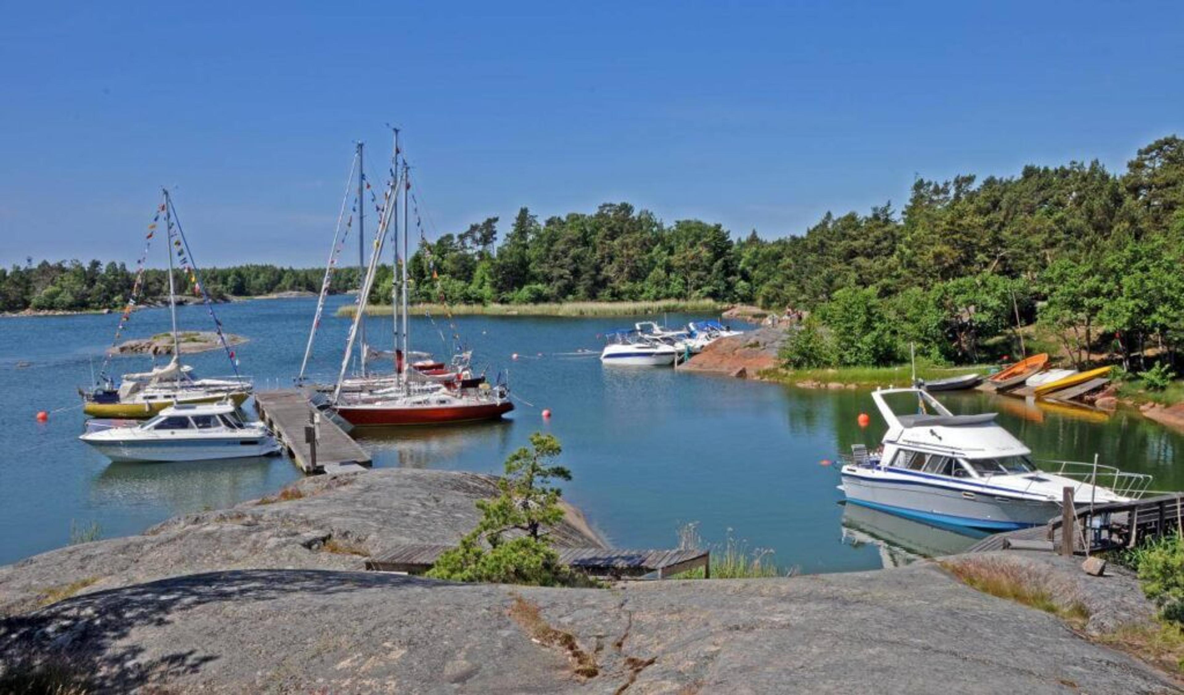 Här finns fina bryggor att lägga till vid, en bastu med utsikt över vattnet och flera grillplatser där middagar tillagas i kvällssolen. Klubbstugan är utrustad med pentry och ett stort samlingsrum som inbjuder till gemenskap över generationsgränser. Den södra sidan av holmen bjuder på en barnvänlig strand där den populära leksakslådan står redo för lek och upptäcktsfärder.